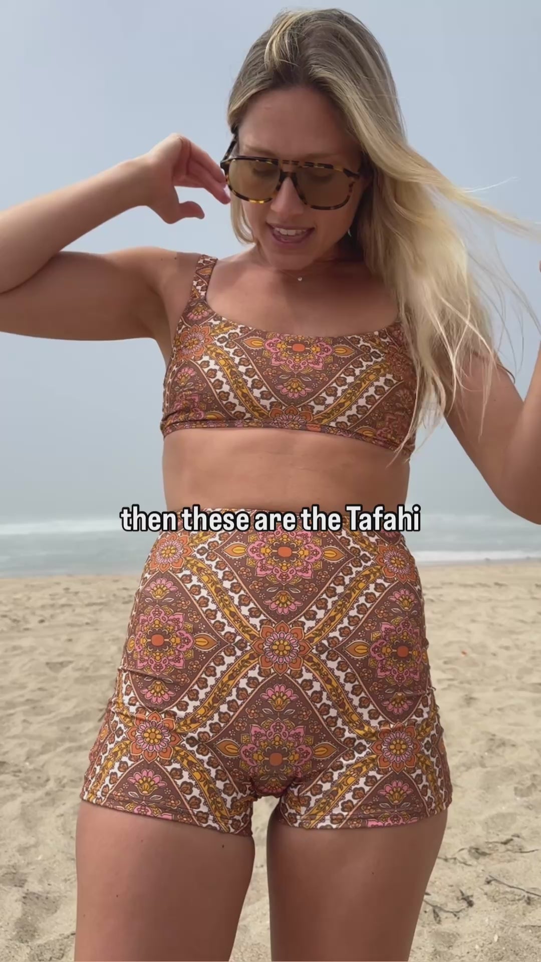 The Praia and Misool surf shorts are cheeky, whereas the Tafahi are full coverage. They have a longer inseam, the sides come down lower, and the butt is fully covered! It is also one continuous shape, so it fits more smoothly and is very flattering!